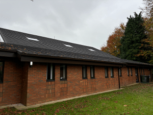 As part of a national specification for churches, the Metrotile Slate .9 profile in Charcoal was selected for its exceptional durability, seamless slate-like appearance, and superior anti-vandal properties. The Metrotile roof system was the perfect solution for solving the issue the Church was having at the pitch change with the existing roof, as the internal gutter could be removed and the Slate .9 installed providing water-tightness even at the changing pitch. The lightweight yet robust nature of the Metrotile system ensured that the structural integrity of the building was maintained while enhancing its overall aesthetic.